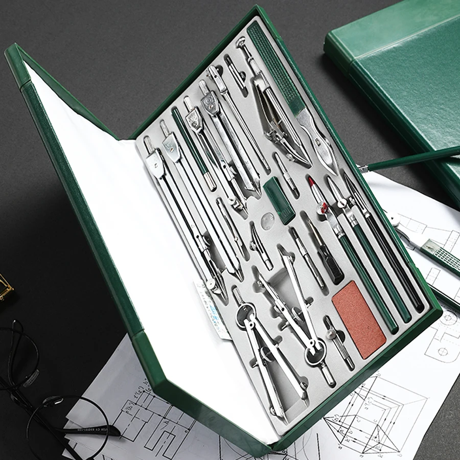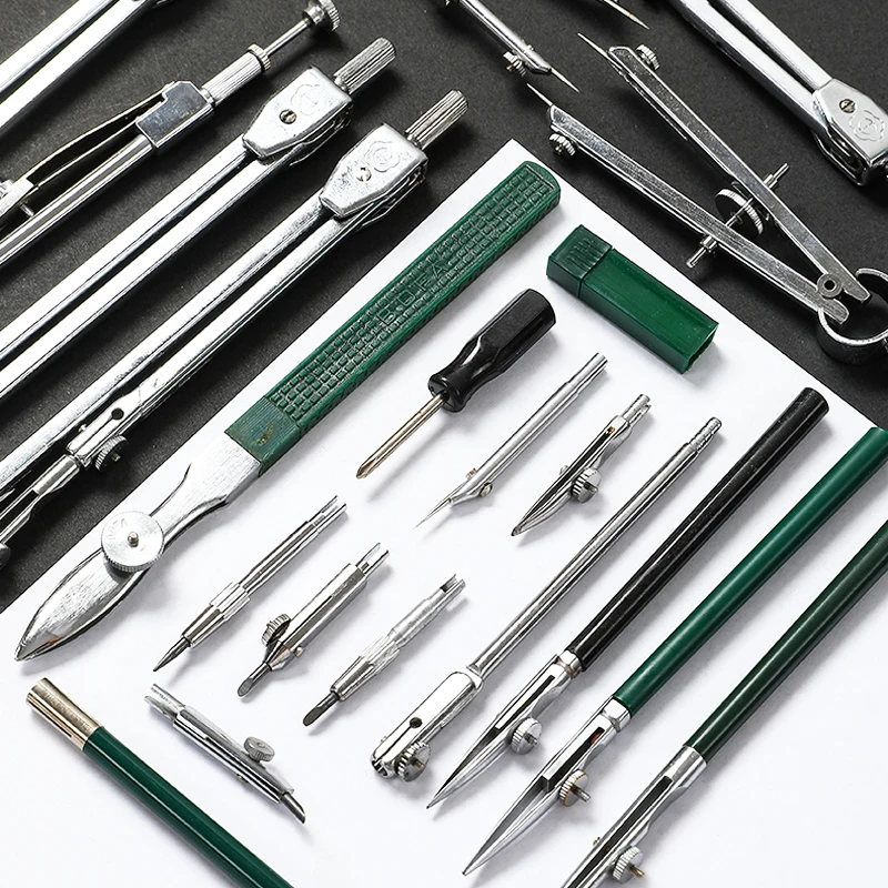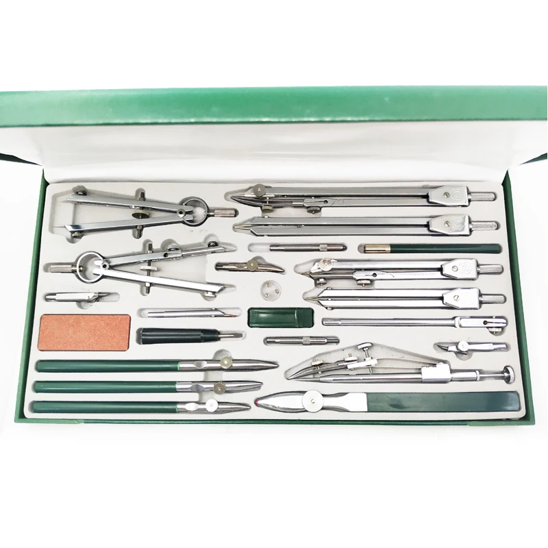 ORIGINAL 23Pcs / set plotter mechanical construction engineering drawing metal compass tool set plumber draw